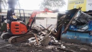 “30 bangunan liar yang ada di Jl. Karya Logam, Kp. Legon dan 15 bangunan di jalan utama kami tertibkan. Hal itu dilakukan guna mengembalikan fungsi lahan. Sebelumnya, kami juga sudah mensosialisasikan kepada pemilik untuk melakukan pembongkaran mandiri,” ujar Acep dilokasi pembongkaran.