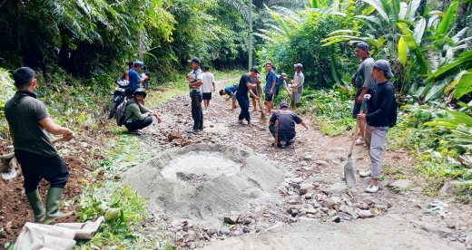 Selasa 12 Agustus 2025, lebih dari 100 warga bergotong royong memperbaiki jalan akses utama desa yang rusak sepanjang 5 kilometer.