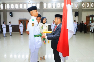 Sebanyak 35 anggota Pasukan Pengibar Bendera Pusaka (Paskibraka) Tingkat Kabupaten Labuhanbatu Utara (Labura)Tahun 2025, dikukuhkan oleh pemkab Labura melalui Wakil Bupati Labuhanbatu Utara, Dr. H. Samsul Tanjung, S.T., M.H, di Aula Ahmad Dewi Syukur, Jumat (15/8/2025).