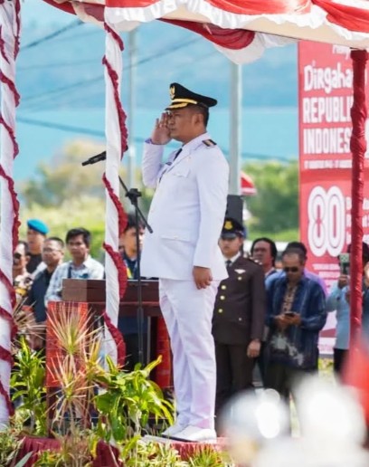 Upacara HUT RI ke 80 di Kabupaten Toba, pertama kali dipimpin oleh Bupati Effendi SP Napitupulu bersama Wakil Bupati Audy Murphy O Sitorus.