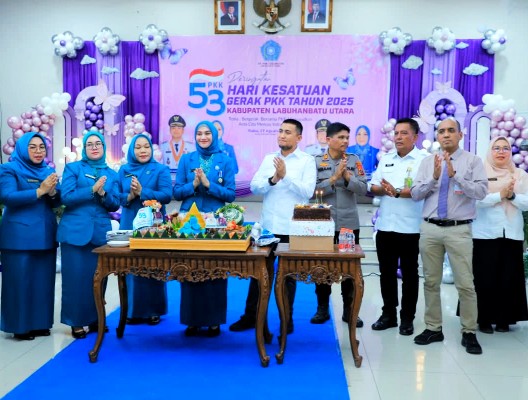 Peringatan Hari Kesatuan Gerak (HKG) PKK ke-53 Tahun 2025 tingkat Kabupaten Labuhanbatu Utara, dengan tema “Bergerak Bersama PKK Wujudkan Asta Cita Menuju Indonesia Emas”, digelar di Aula Ahmad Dewi Syukur, Rabu (27/8/2025), yang dihadiri oleh Bupati Labuhanbatu Utara Dr. H. Hendriyanto Sitorus, S.E., M.M.