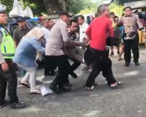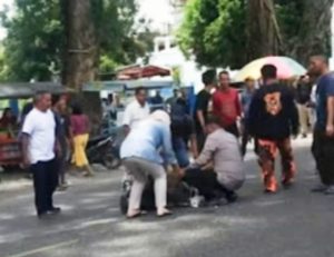 Peristiwa tersebut sontak membuat masyarakat di sekitar lokasi panik. Beberapa warga bersama personel kepolisian bergerak cepat menolong korban.