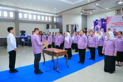 Ketua Tim Pembina Posyandu Kabupaten Labuhanbatu Utara (Labura) Tahun 2025, Ny. dr. Hj. Rama Dhona Hendriyanto Sitorus, M.Ked(Ped), Sp.A., dilantik oleh Bupati di Aula Ahmad Dewi Syukur, Rabu (27/8/2925).