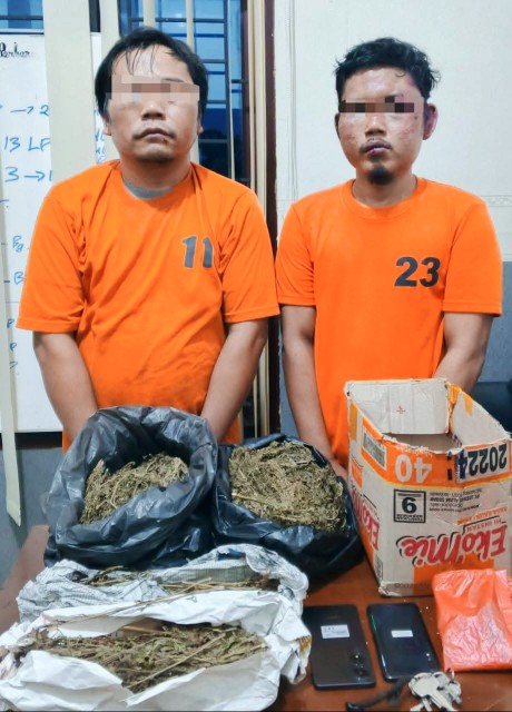 Pelaku penyalahgunaan narkotika golongan 1 berupa tanaman ganja, 2 orang pria diringkus oleh personil Satnarkoba Polres Labuhanbatu, di Jalan lintas Sumatera, Kel. Aek Kanopan, Kec. Kuala Hulu, Kab. Labuhanbatu Utara, didepan Pos Timbangan LLAJ Membang Muda, pada Rabu, 27 Agustus 2025, sekira pukul 11.00 WIB.