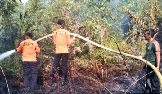 Badan Pengendalian Bencana Daerah (BPBD) Kabupaten Tapanuli Tengah (Tapteng) dibantu TNI, Polri dan masyarakat, berhasil memadamkan api yang membakar hutan dan lahan, di Lingkungan III Mungkur, Kelurahan Tapian Nauli II, Kecamatan Tapian Nauli, Rabu (27/8/2025).