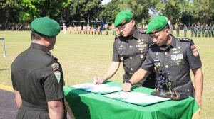 Batalyon 407/PK menggelar acara tradisi pisah sambut Komandan Batalyon 407/PK dari Letkol Inf Rachmat Ferdiantono kepada Letkol Inf Sisriyanto Ade Prasiska, berlangsung di Lapangan Komando Yonif 407/PK, Desa Ujung Rusi, Kecamatan Adiwerna, Kabupaten Tegal.