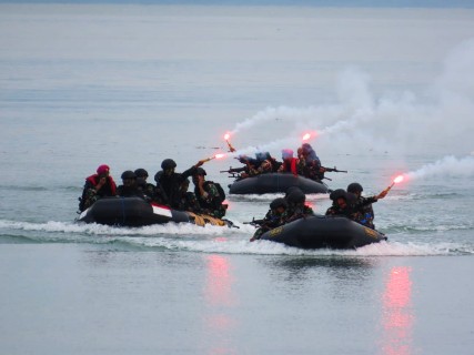 Sulawesi Tengah – Satuan Tugas Operasi Trisila-25 Tahap III Koarmada II melaksanakan latihan pendaratan amfibi di Pantai Kampung Nelayan Talise, Kota Palu. Latihan ini merupakan bagian dari skenario operasi guna meningkatkan kesiapan tempur prajurit TNI Angkatan Laut dalam menghadapi berbagai tantangan di laut maupun pesisir, Senin (15/09/10).