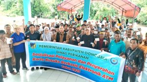 Dinas Perikanan Kabupaten Donggala sosialisasi Penyerahan dan Pelayanan Kartu KUSUKA berbasis elektronik ATM Tahun 2025, di TPI Desa Sabang, Kecamatan Dampelas.