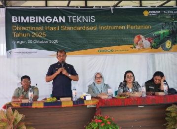 Bimbingan Teknis Diseminasi Hasil Standarisasi Pertanian Tahun 2025 yang berlangsung di Instalasi Penelitian dan Pengkajian Teknokogi Pertanian (IP2TP) Gurgur, Desa Gurgur Aek Raja, Kecamatan Tampahan, Kabupaten Toba, pada Kamis (30/10/2025).
