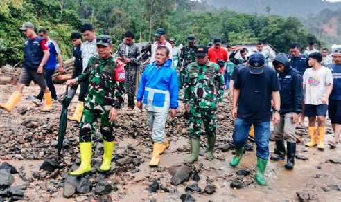 Foto : Bupati Tapteng, Masinton Pasaribu meninjau lokasi terdampak banjir susulan, Jumat (2/1/2025). (Sangkakala 7/Dinas Kominfo Tapteng)
