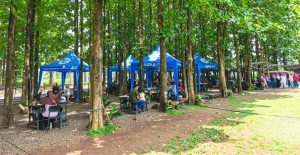 Berlokasi di kawasan terbuka dengan nuansa alami, area ini menawarkan pengalaman berbeda bagi pengunjung. Di bawah rindangnya pohon-pohon jati, tersusun rapi meja-meja yang menghadirkan suasana santai, asri, dan nyaman. Konsep ini memadukan keindahan alam dengan aktivitas ekonomi kreatif berbasis masyarakat.