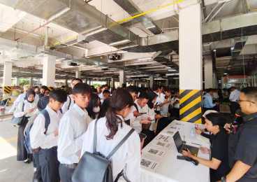 Sekitar 500 orang pelamar terlihat memadati area parkiran lokasi. Mereka datang dengan mengenakan pakaian formal berupa kemeja putih dan celana hitam, menunjukkan keseriusan dalam mengikuti seleksi kerja tersebut.