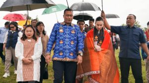 Widiyanti Putri Wardhana tiba di Kabupaten Toba pada Jumat (17/4/2026) sore. Kehadiran Menteri Pariwisata Republik Indonesia tersebut disambut langsung oleh Effendi Sintong P. Napitupulu bersama Ketua TP PKK Kabupaten Toba Ny. Astita Effendi Napitupulu, didampingi Sekda Toba Paber Napitupulu serta sejumlah pimpinan OPD di Bukit Singgolom, Desa Lintong Nihuta, Kecamatan Tampahan.