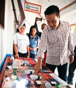 Usai menyampaikan sambutan, Bupati Humbahas meninjau pameran karya siswa UPT SMP Negeri 025 Siborutorop Paranginan.