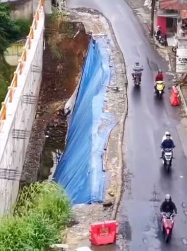 Dampak yang ditimbulkan pun cukup signifikan. Bahu jalan mengalami amblas, bahkan sebagian badan jalan ikut terdampak. Kondisi ini menjadikan kawasan tersebut sebagai salah satu titik kritis yang menguji ketahanan infrastruktur jalan di wilayah tersebut.