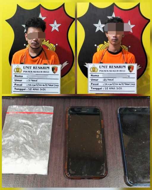 Polsek Kualuh Hulu kembali tangkap 2 orang pria pemilik narkotika jenis sabu seberat 10 gram. Kanit Reskrim Polsek Kualuh Hulu, Polres Labuhanbatu Ipda. Ramadhan Hilal. SH., MH, menjelaskan, penangkapan pelaku penyalahgunaan narkotika jenis sabu ini berawal dari informasi warga, adanya dua (2) orang pria memiliki barang terlarang.